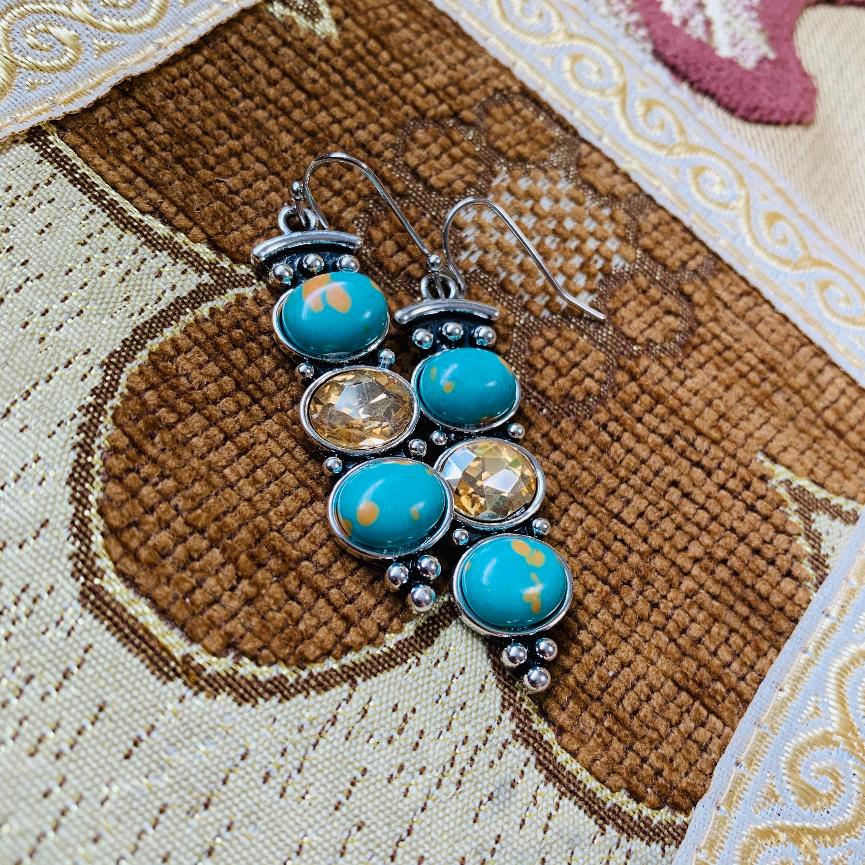 ターコイズ色にシャンパンゴールドの輝きが際立つピアス。