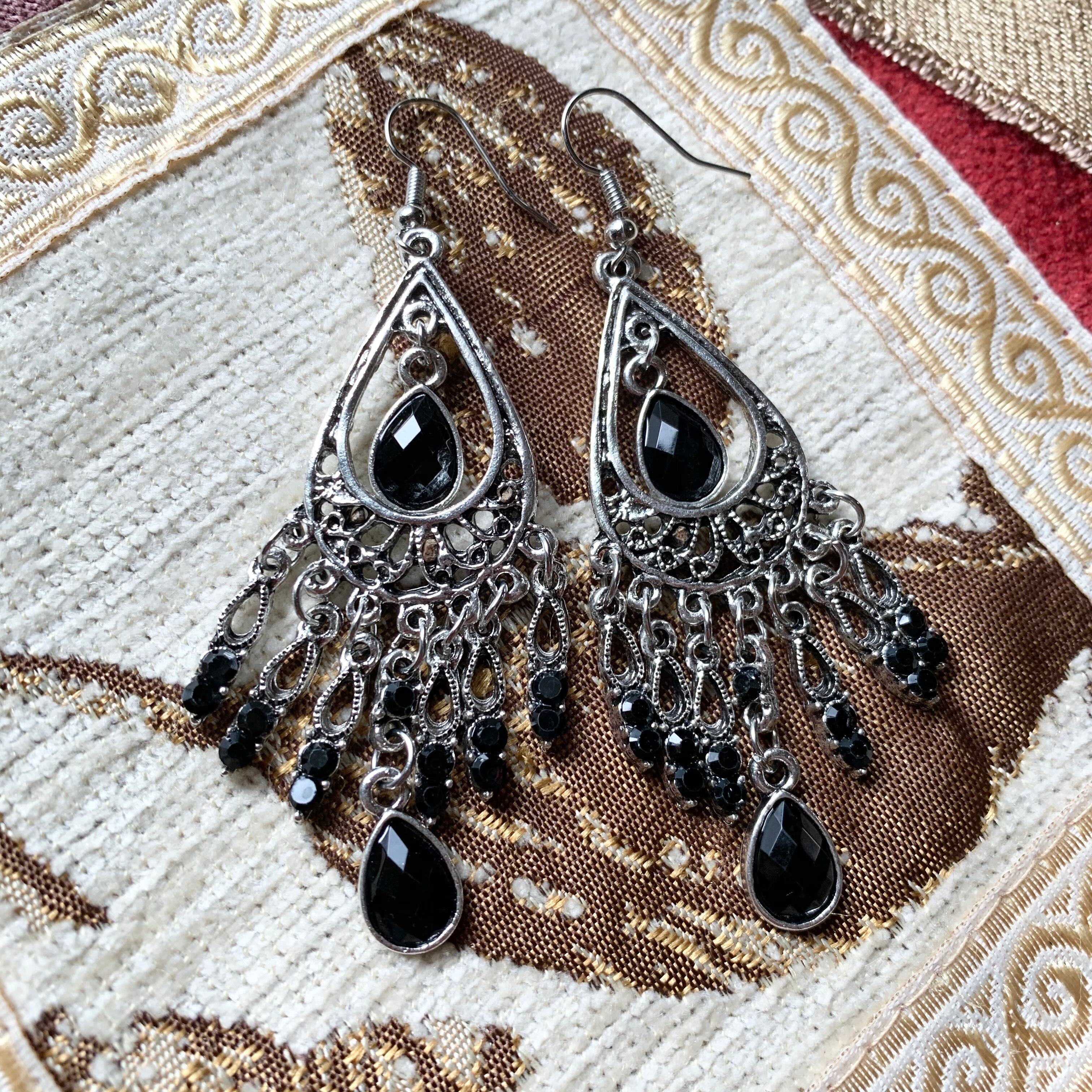 輝くストーンが揺れるエキゾチックなピアス。
