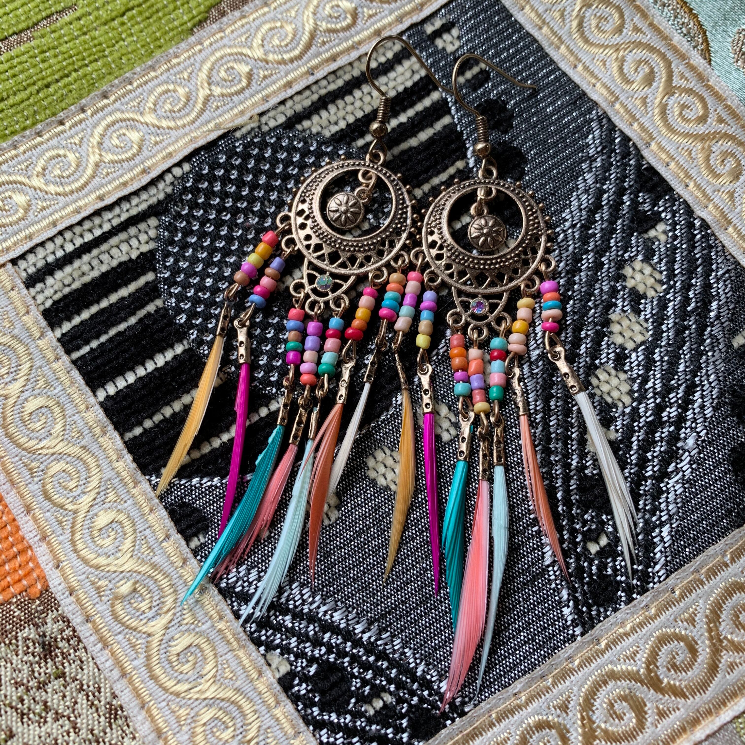 マルチカラーが可愛いドリームキャッチャー型ピアス。