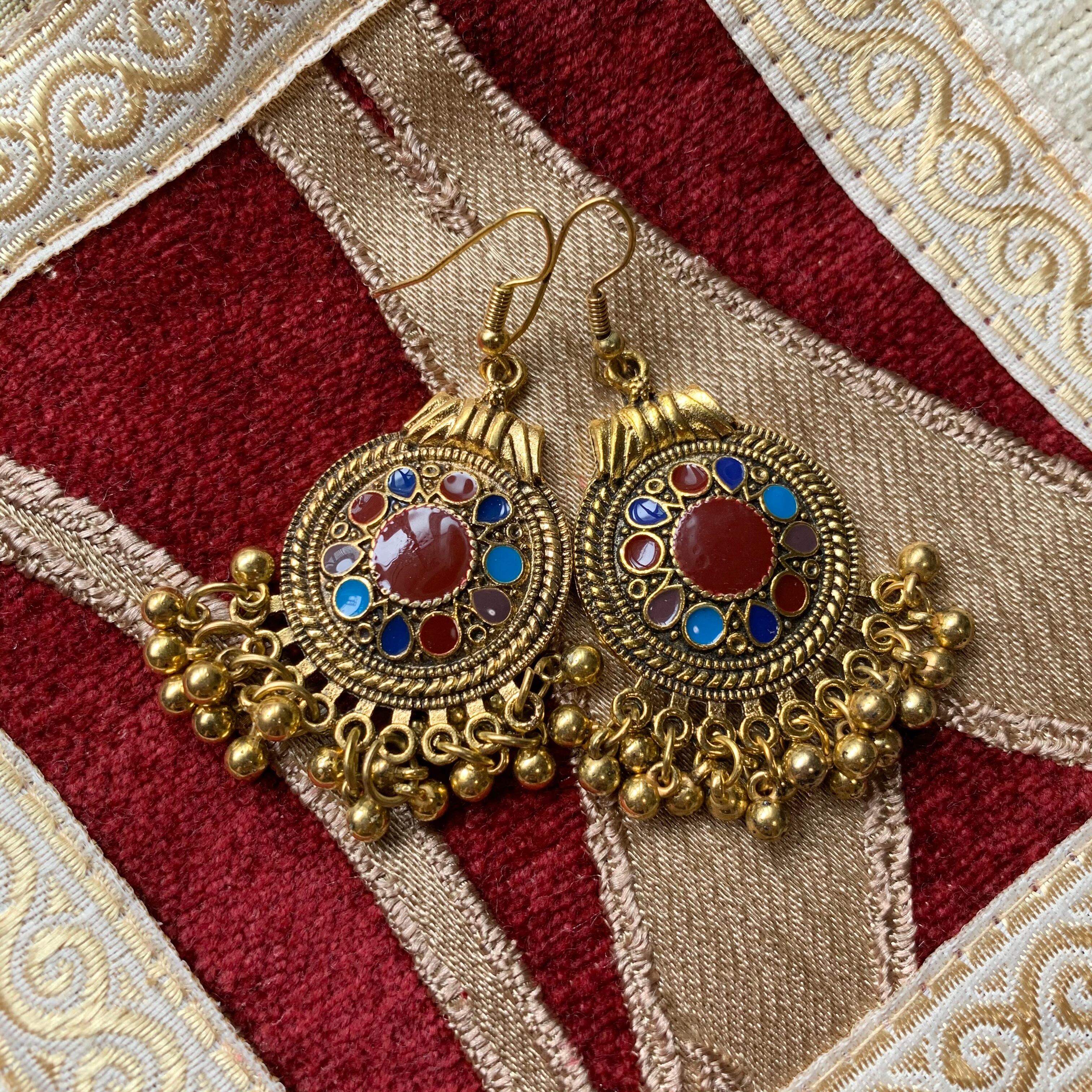 深い赤色がアクセントのゴージャスなビンテージ風ピアス。