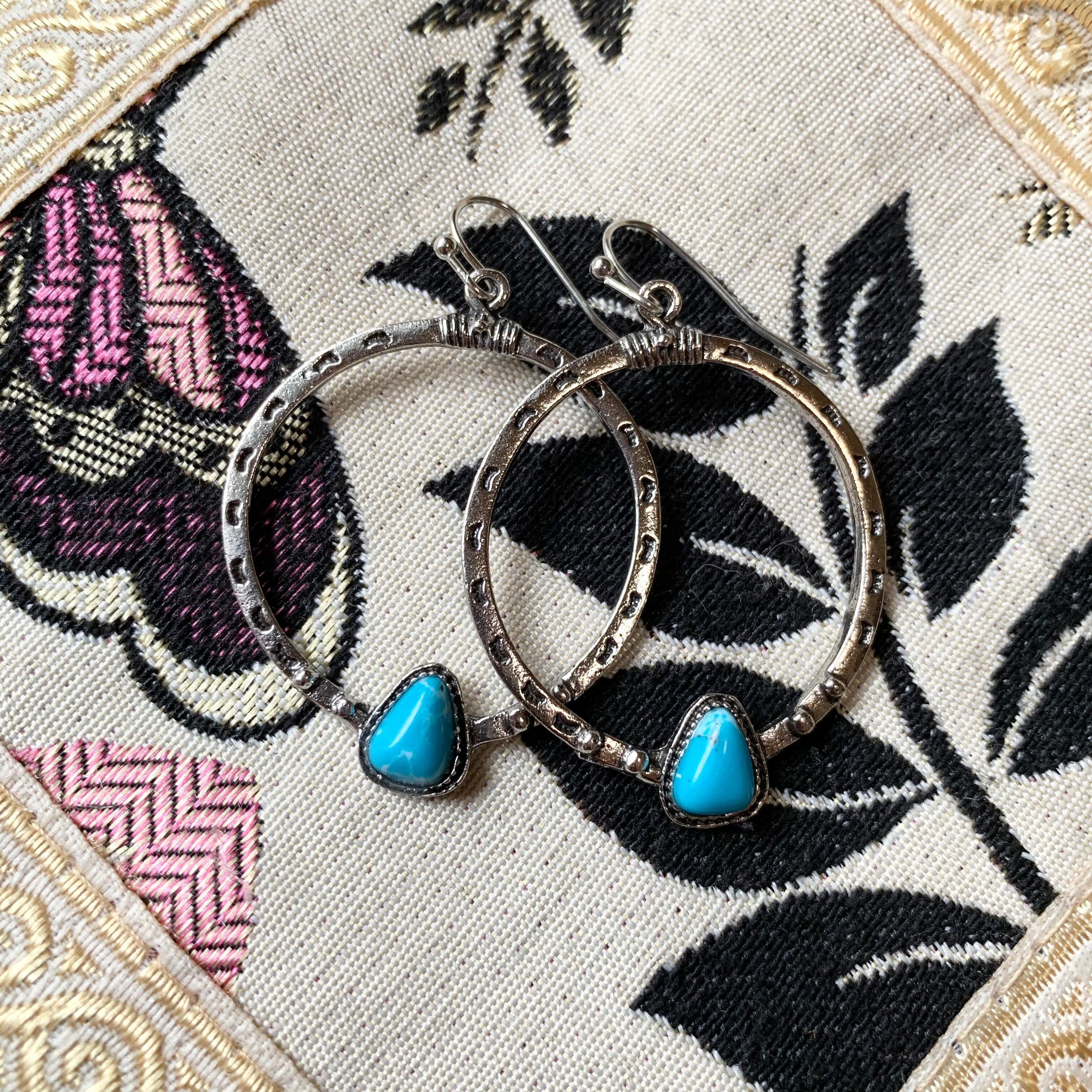 小さなターコイズ石がアクセントになったフープ型ピアス。