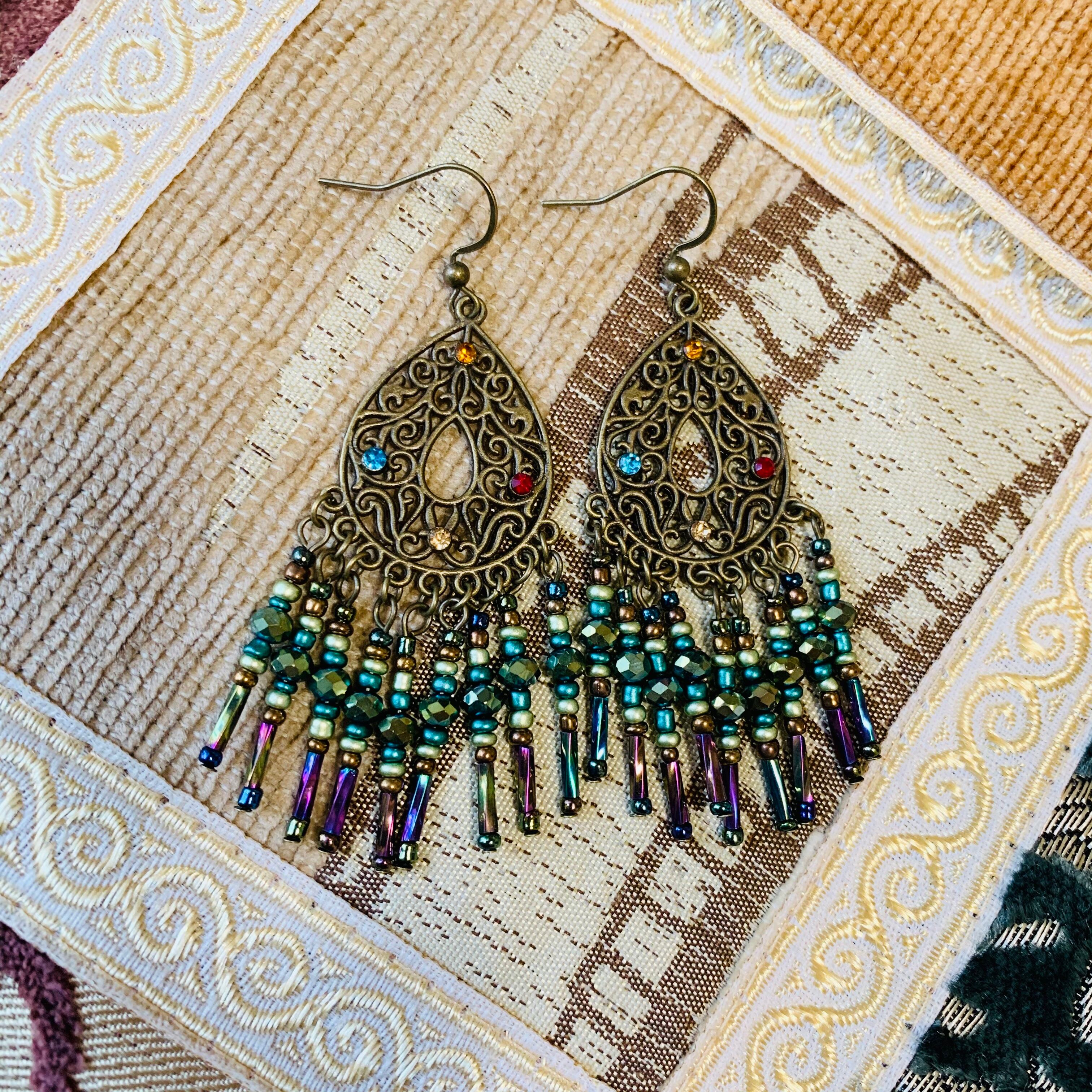 ビーズのフリンジが揺れる大人な印象のピアス。
