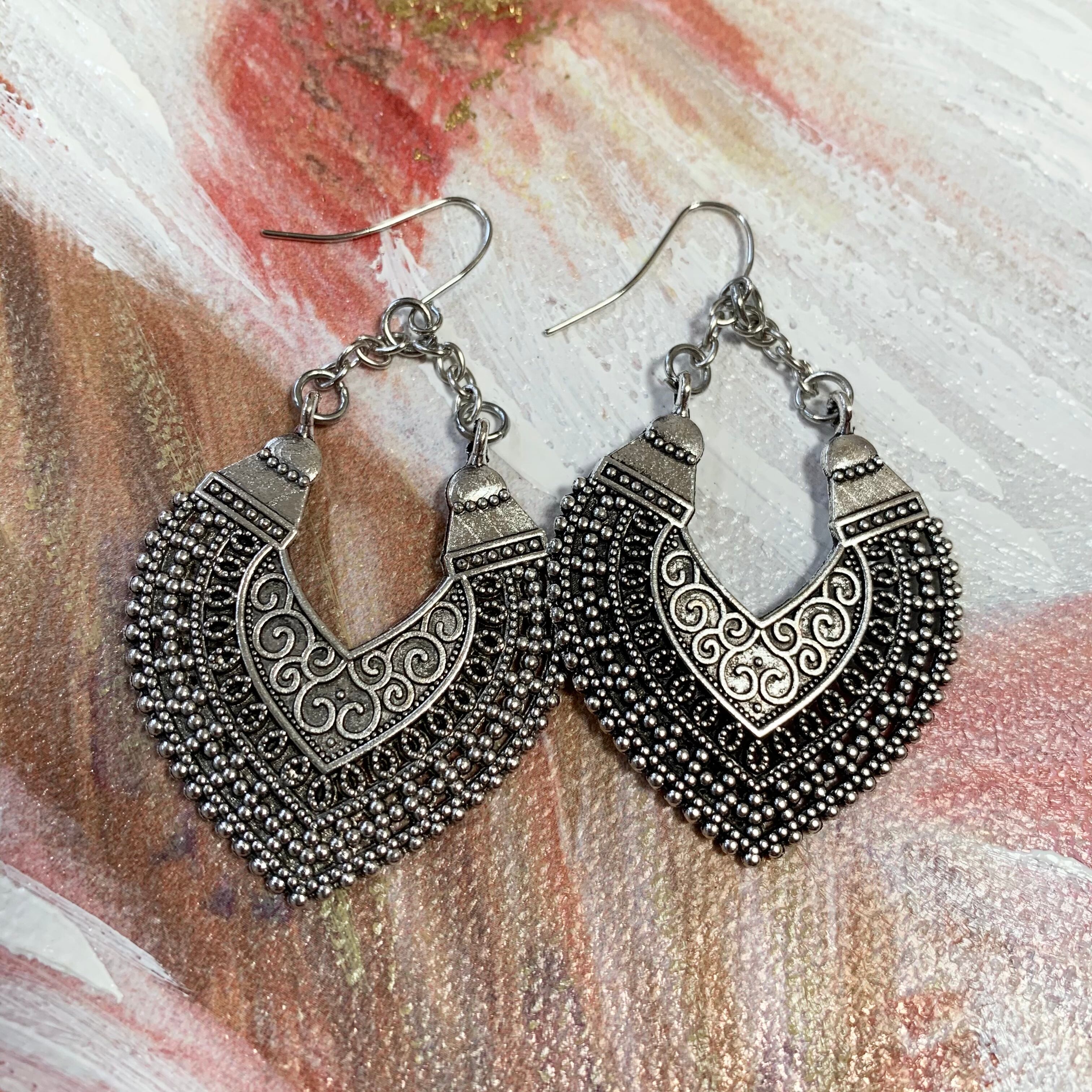 トライバル調のよく揺れる軽量ピアス。