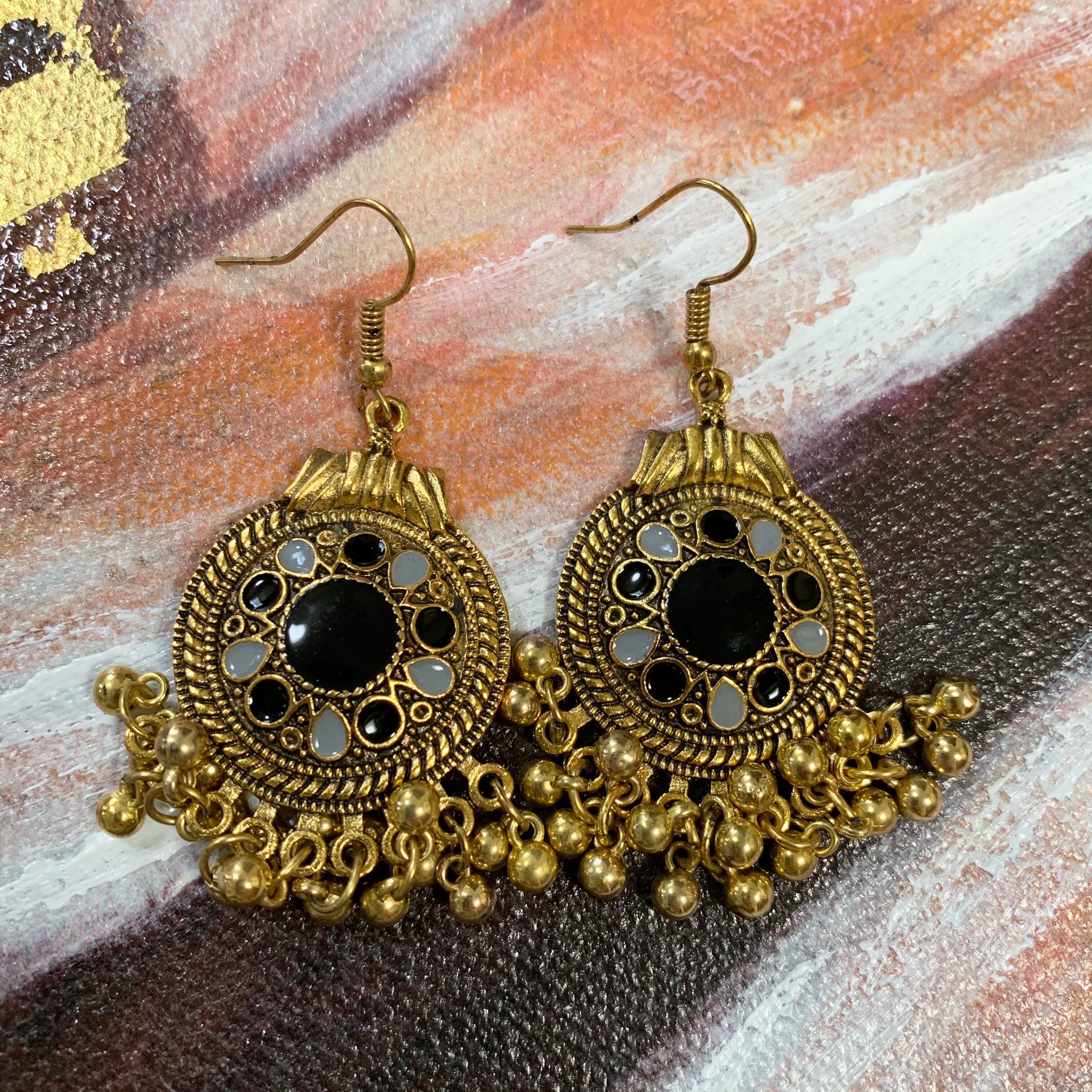 深い黒色がアクセントのゴージャスなビンテージ風ピアス。