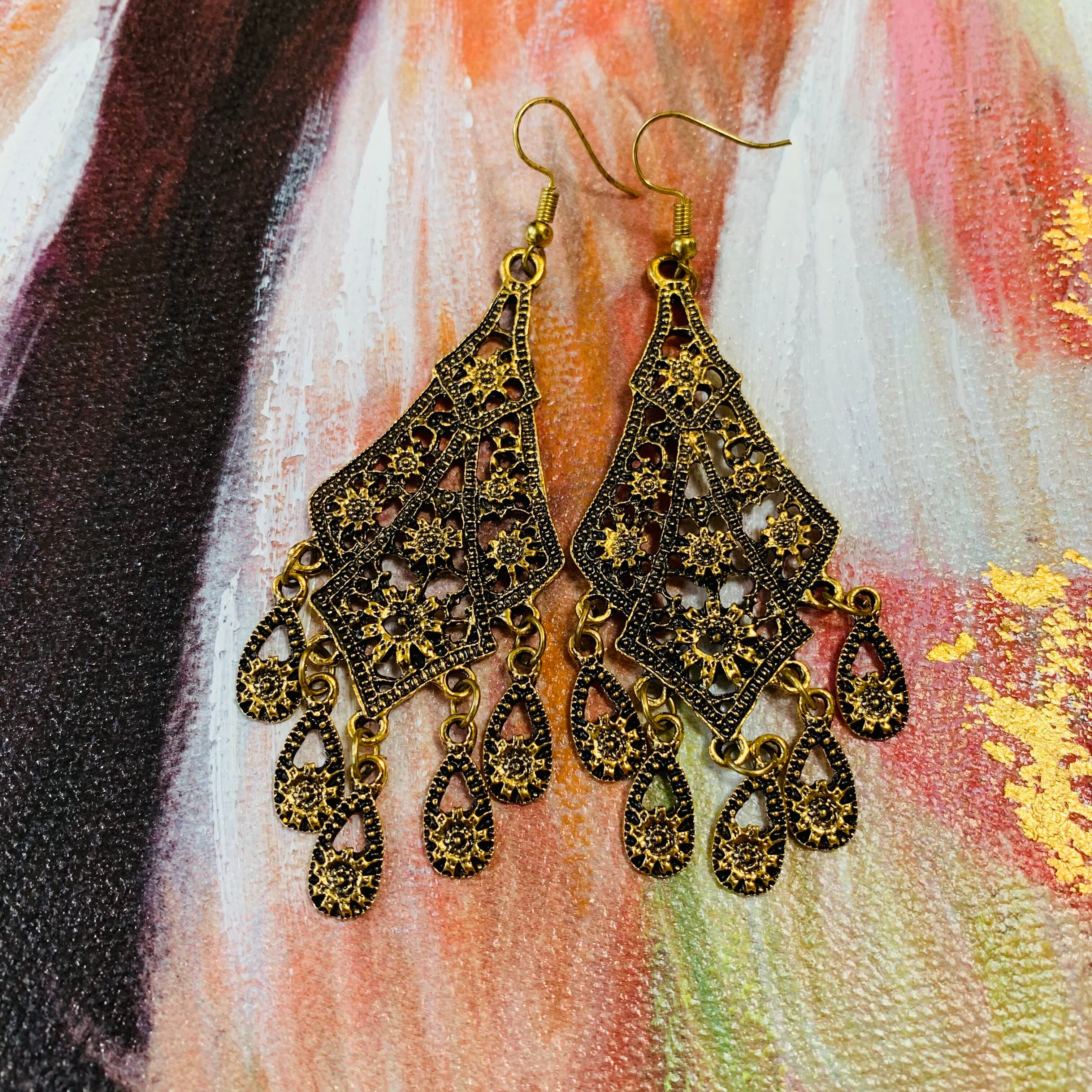 燻したゴールドがゴージャスに輝く大判ピアス。