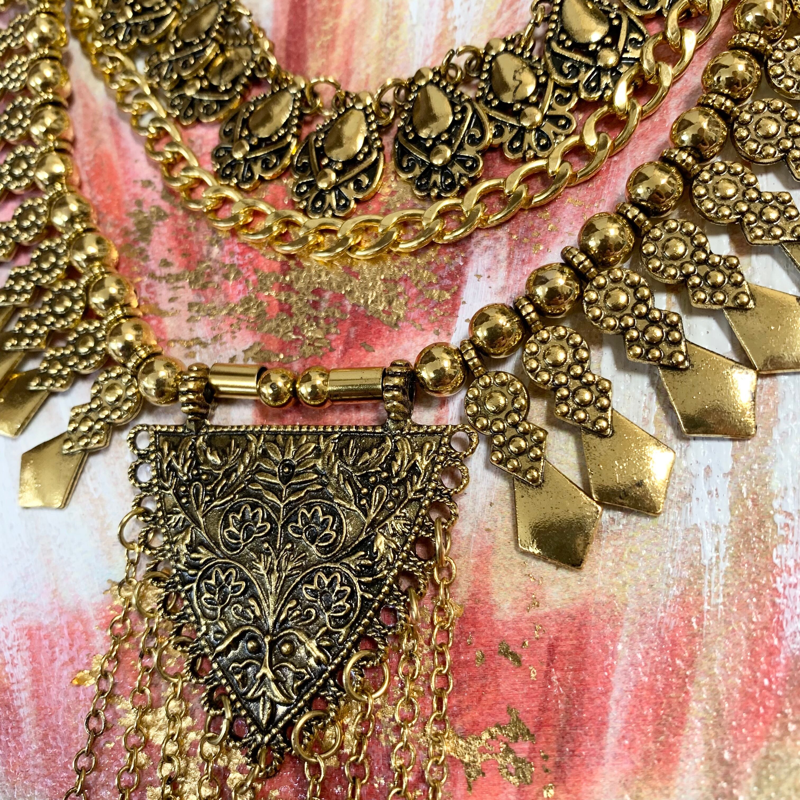 燻しゴールドのアンティーク調ジプシーネックレス。