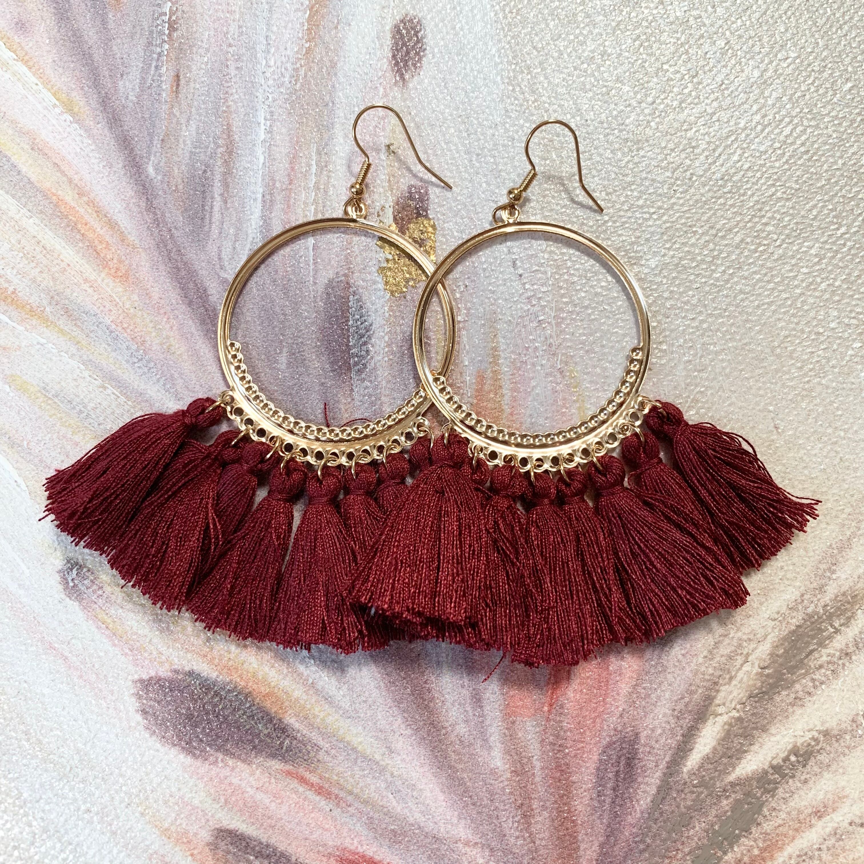 タッセルがたっぷりあしらわなれたリング型ピアスです。