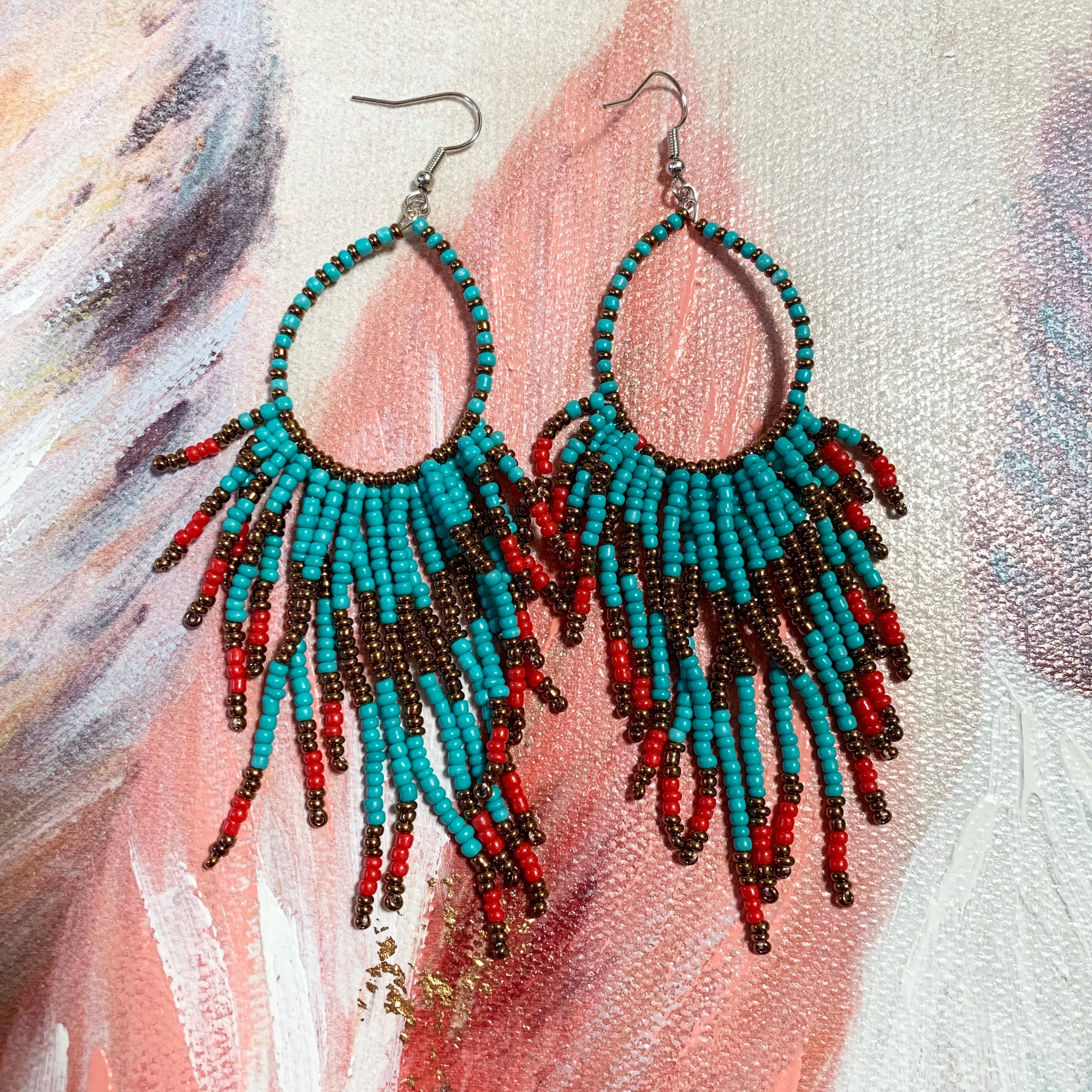 エスニックな雰囲気のビーズたっぷり大判ピアス。