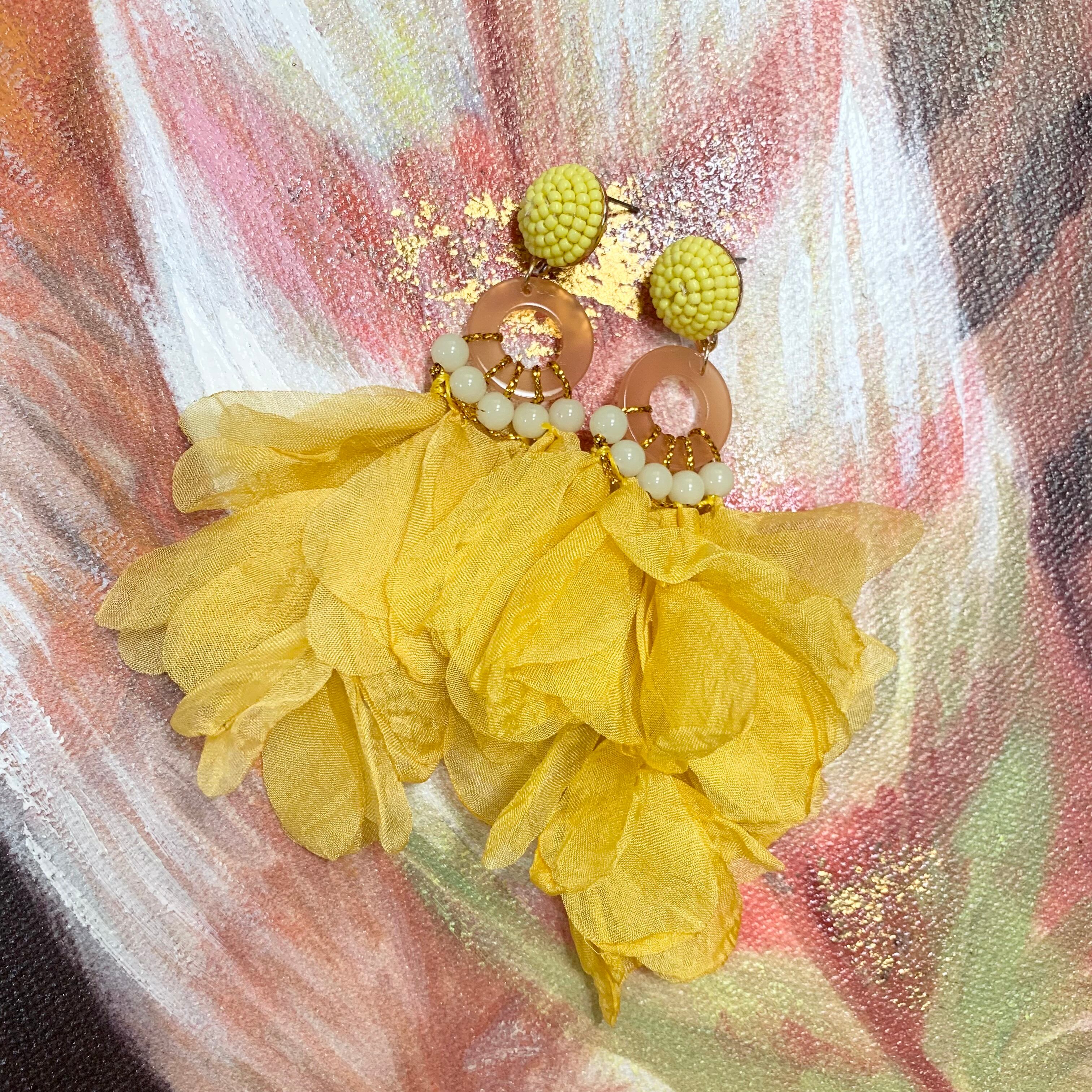 花びらがたっぷりあしらわれた大判軽量ピアス。